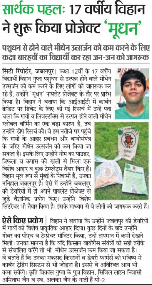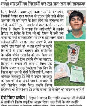 Nominated for PM Rashtriya Bal Puraskar (Prize) 2025 (Environment) by the NGO Dayodaya Pashu Samvardhan Evam Paryavaran Kendra (Gaushala)
